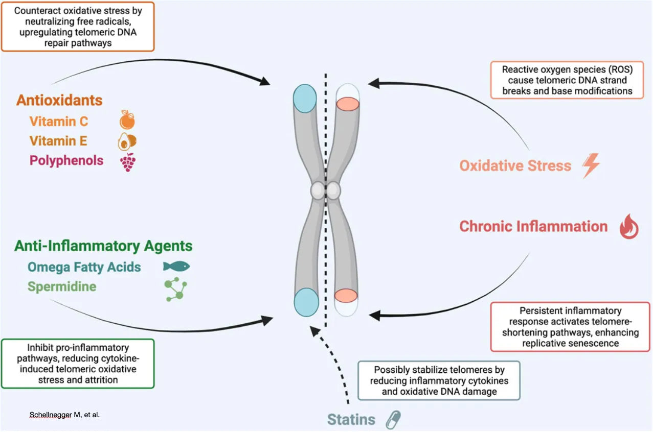 Response to Stress: Telomeres may interact with various stressors, such as oxidative stress and inflammation, potentially influencing cellular health outcomes.